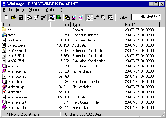 WinImage, et les exécutables SFX sont traduits (dans WinImage 4.0, les fichiers
